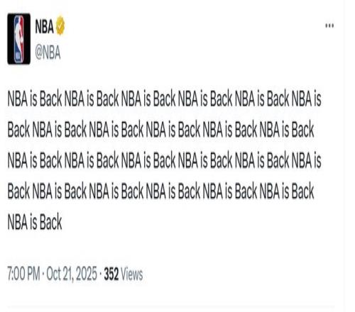 難掩激動之情!NBA官方更新社媒狂發(fā)23次“NBA回來了” 雷速體育 2025-10-21 19:59:49 雷速體育10月21報道 明日新賽季NBA即將拉開帷幕。@NBA官方也是難掩激動之情,就在剛剛發(fā)布了一條含有23個“NBA is Back”(NBA回來了)的社媒。 明日7點30分雷霆主場迎戰(zhàn)火箭,10點湖人主場對陣勇士。 湖人勇士火箭對陣社媒NBA 上一篇: NBA新賽季還沒開始,威少和詹姆斯的恩怨就又多了一段猛料下一篇: 返回列表