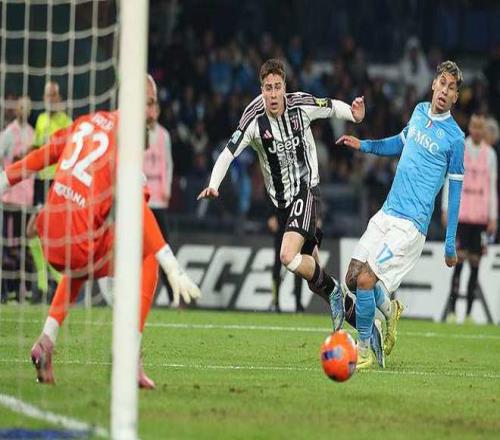 上半場第7分鐘,內(nèi)雷斯帶球殺入禁區(qū)右側(cè),接著下底橫傳門前,霍伊倫在門前近距離包抄鏟射得手幫助那不勒斯隊取得領(lǐng)先。下半場第14分鐘,麥肯尼妙傳,伊爾迪茲在禁區(qū)右側(cè)小角度低射破門,為尤文圖斯隊扳平比分。